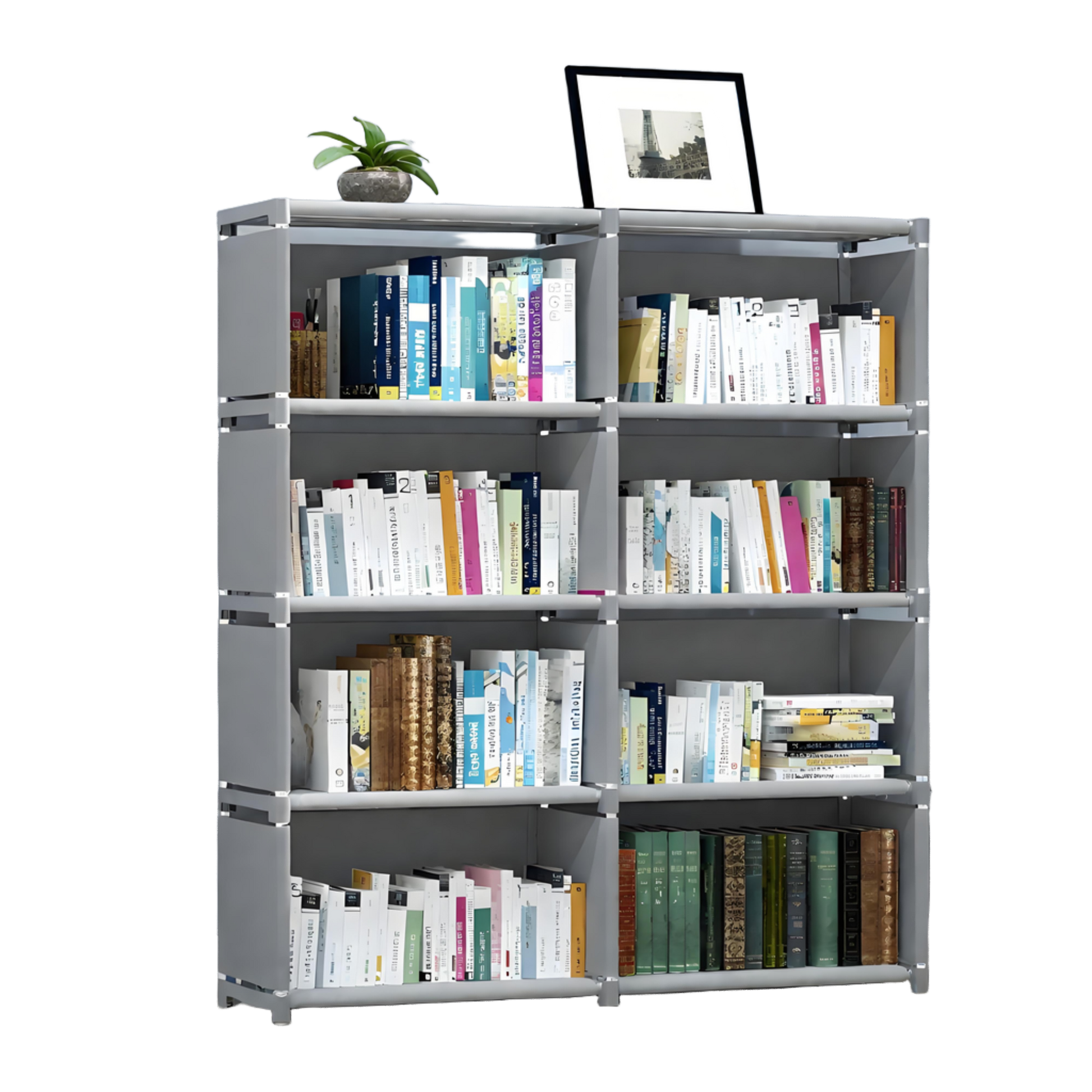 HioHa 8-Cube Storage Organizer, Portable Folding Bookshelf with Adjustable Shelves , Space Saving Unit for Home Office Closet , Grey
