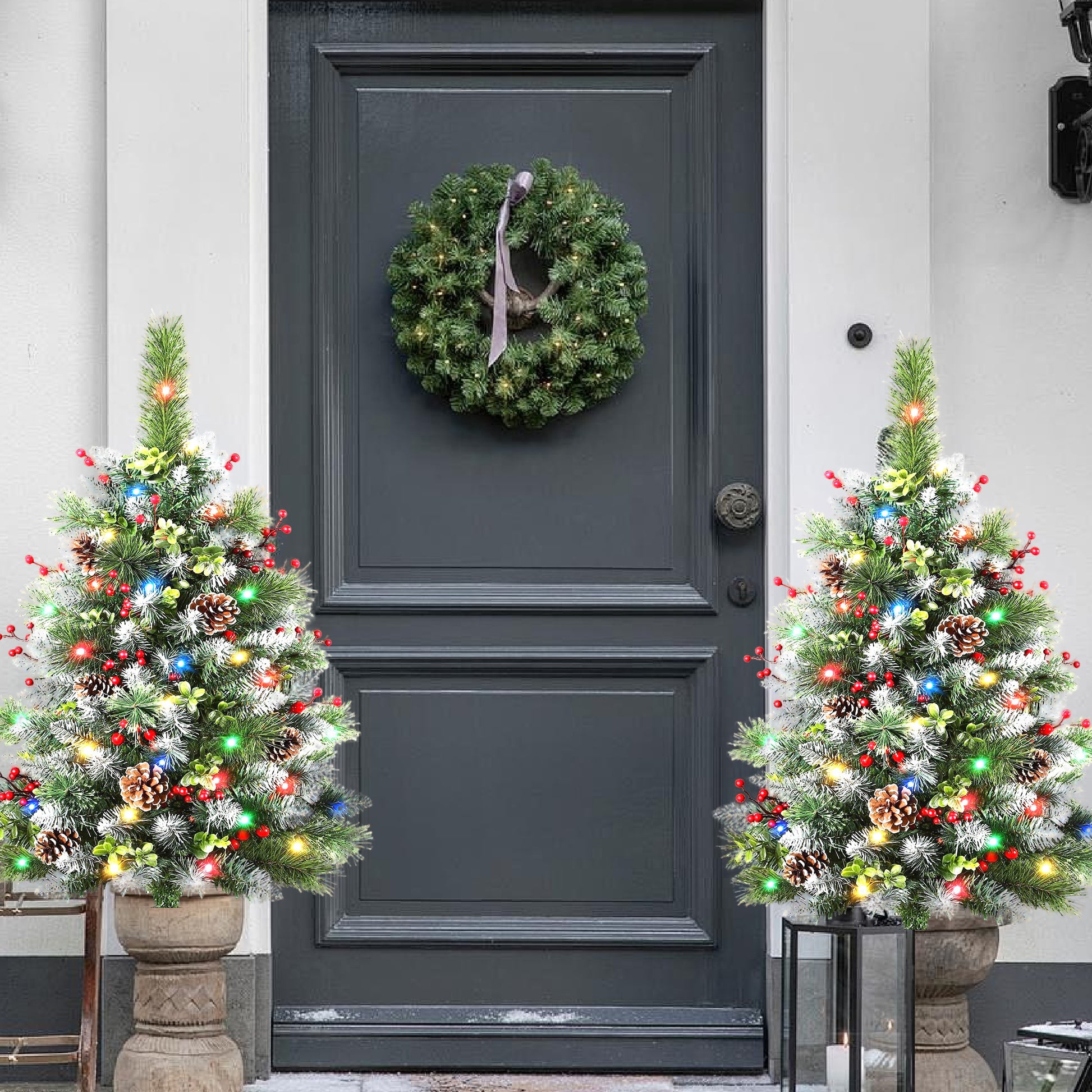 Elevate your holiday decorating with this exquisite LED-lit planter display. Featuring a lush mix of emerald green pine needles, realistic branches, and festive accents of red berries, gold berries, and pinecones, it brings classic Christmas charm to any space. Pre-strung with warm white lights, it offers 8 unique lighting modes—from a gentle slow fade to a joyful twinkle—to create your perfect seasonal ambiance. Setting up is effortless thanks to the sturdy, freestanding tripod base, making it ideal for both indoor and outdoor use. Perfect for patios, gardens, walkways, and porches, this planter is the ultimate holiday accent for sparkling container decor.