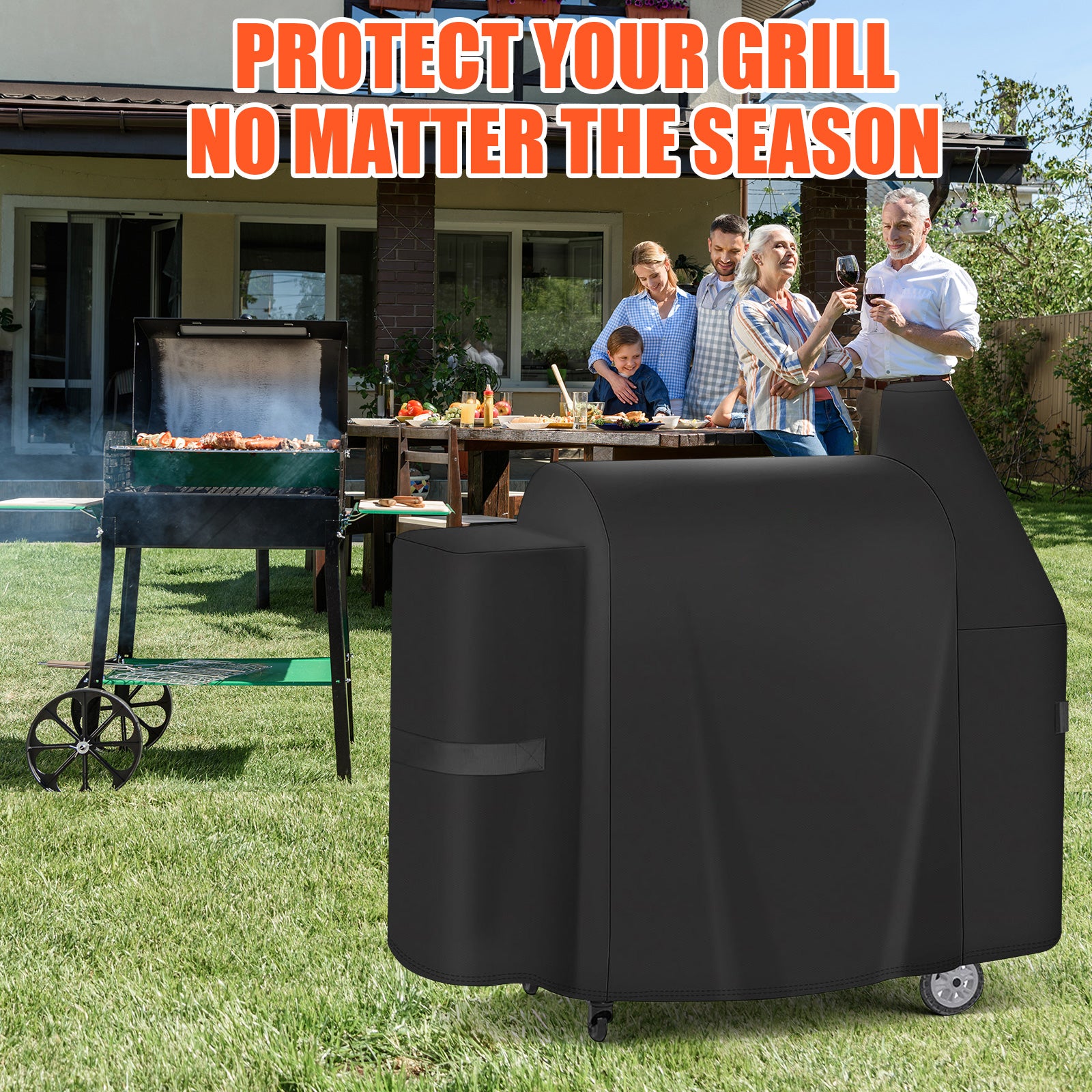 - The barbecue cover is black, resistant to dirt and abrasion. Just wash it and the water will disappear quickly. Dried in the sun for next use.